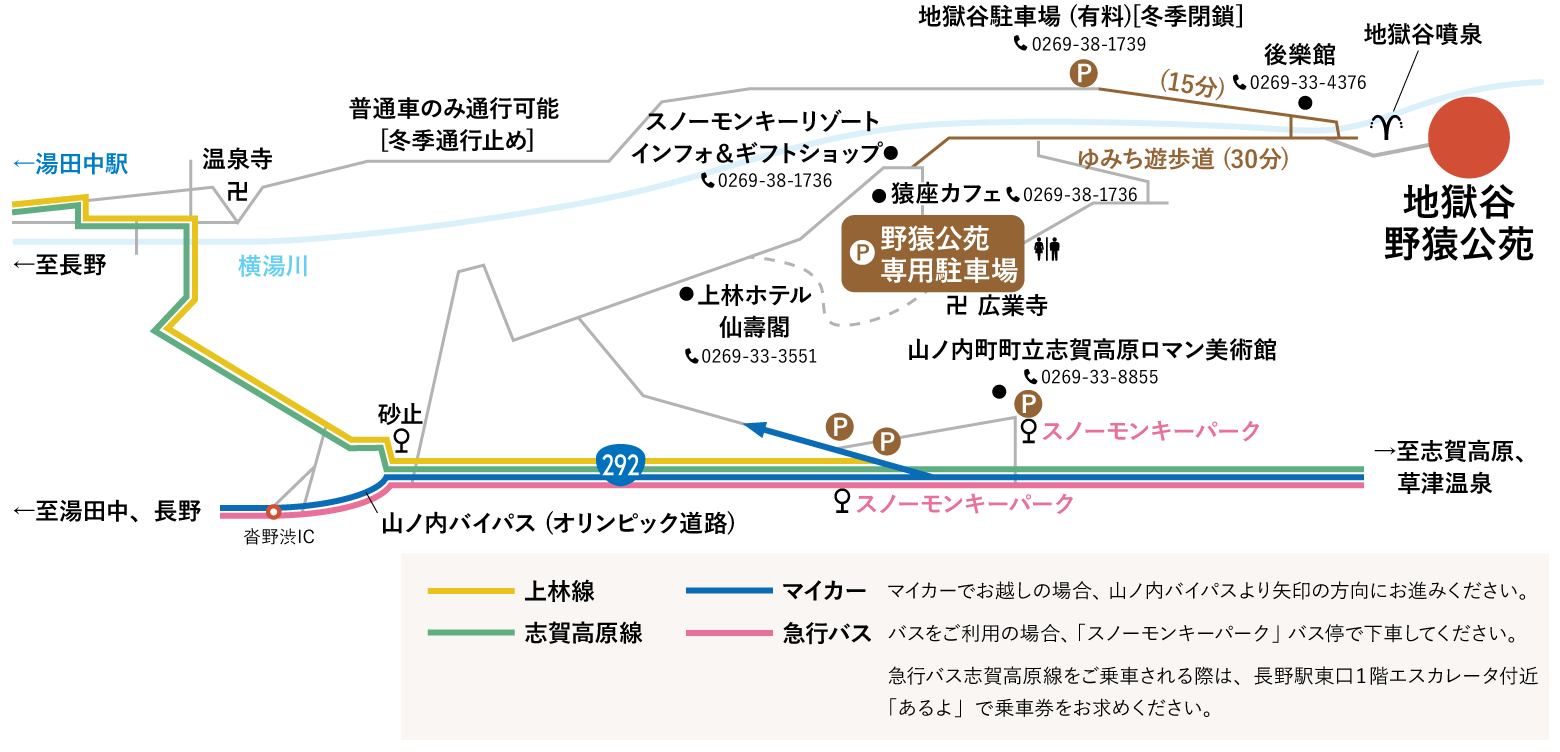 - 地獄谷駐車場 TEL:0269-33-5733