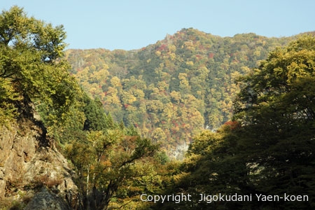 地獄谷野猿公苑は、長野県の北部、上信越高原国立公園の志賀高原を源とする横湯川の渓谷に位置しています。 険しく切り立った崖に囲まれ、噴泉が絶えず噴煙を上げている、そのような光景に、いつしか人々はこの地を地獄谷と呼びました。標高850m、地獄谷の冬は厳しく1mを越える雪に覆われ、最低気温が-10℃を下回ります。人間を除く霊長類の生息北限とされる下北半島と比べても引けをとらない厳しい環境です。