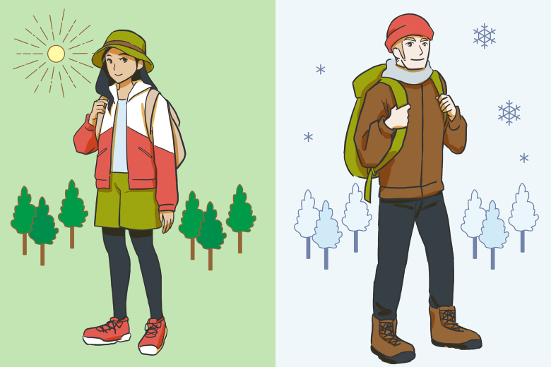 天候に合わせた服装、靴でお越しください。スニーカーや登山靴、冬は長靴やスノーブーツなどをお勧めします。