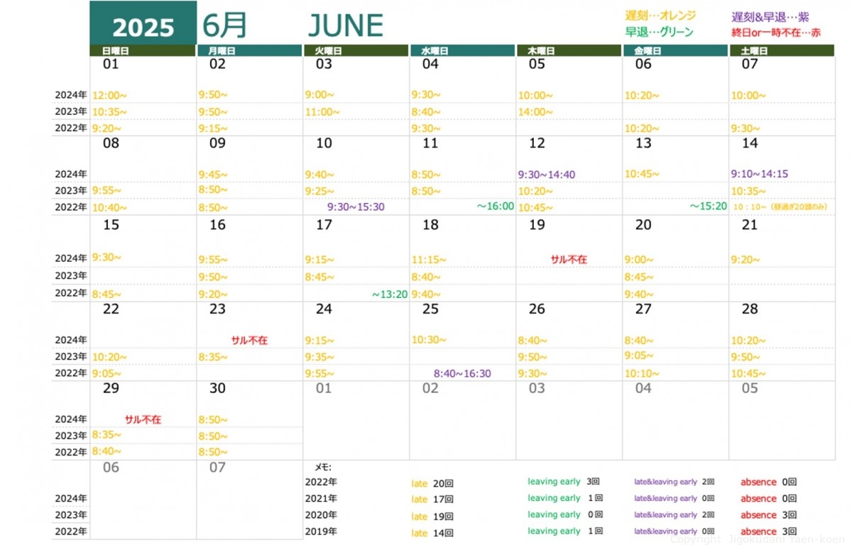以下、過去のサルたち5月出勤情報ですので、こちらもご参考ください。