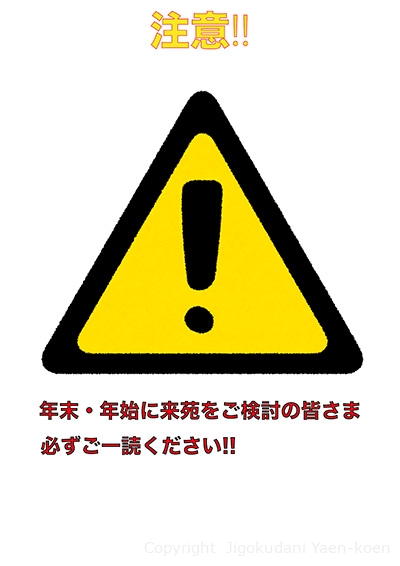 年末・年始に来苑をご計画されている皆さま、このような状況を踏まえて今一度ご検討いただければと存じます。