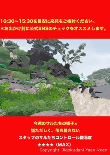 【以下、サルたちの例年の様子と最近の傾向を踏まえた解説です】