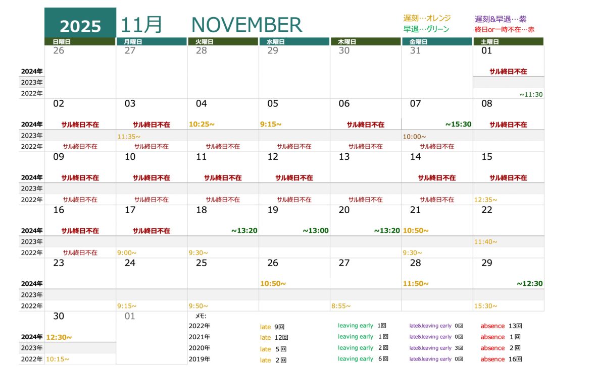 以下、過去3年間の11月のサルたち出勤データです。合わせてご参考ください。