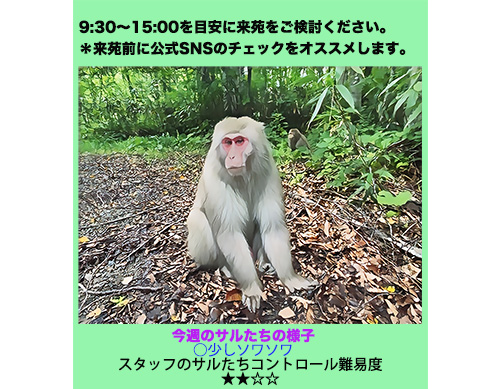 *SNS等でリアルタイムにサルたちの状況をお知らせしていますので、お出かけ前にそちらをチェックしてください。